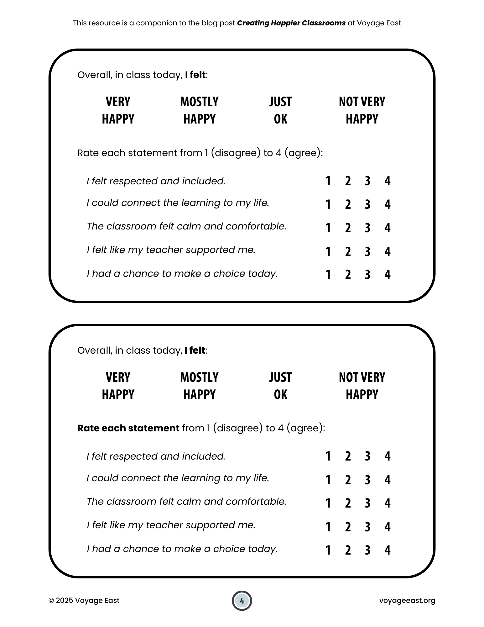 The exit tickets in this resource support the blog post "Creating Happier Classrooms" and offer simple check-ins to help teachers understand how students are feeling. Each version is designed for different developmental stages. Choose the ones that best fit your learners.